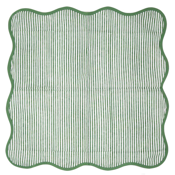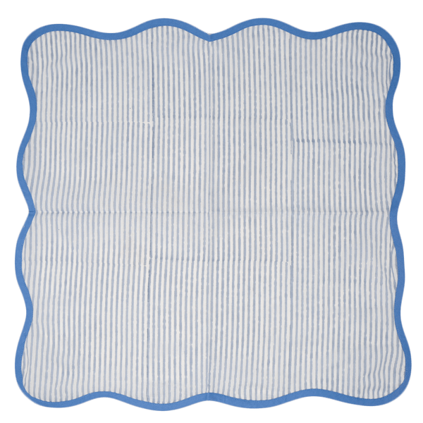 Hand-printed stripes in an array of inviting colors pair beautifully with any larger scale floral print, such as our Camellia or Lily of the Valley. Made in a soft cotton voile with a sweet scalloped border, our Harbor Stripe napkins are a classic and a crowd pleaser on any table.