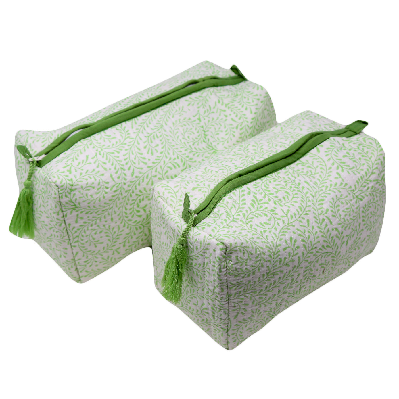 Meet your new travel sidekicks. Our toiletry bags are designed for everyday ease — one roomy pouch for larger items, and a smaller companion for makeup, skincare, or on-the-go necessities. Made with durable, easy-to-wipe interior fabric and quilted cotton exteriors. With two inner pockets, you can keep all the essentials organized whether you’re headed across town or across the country.