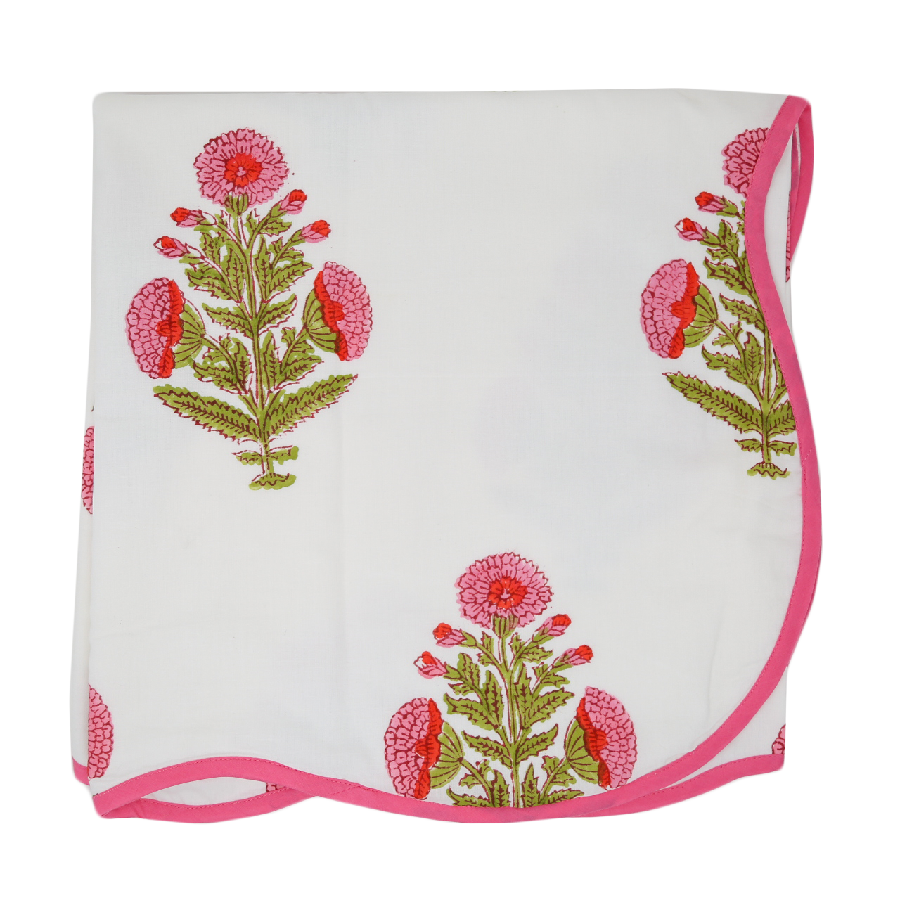 Up your game with our charming scalloped block printed table toppers. Mix and match patterns for a winning look.